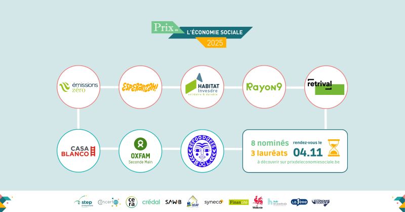 👏 Bravo à tous les nominés sélectionnés cette année Refoodgees, CASABLANCO, Emissions Zéro Coop, Esperanzah!, Habitat InVesdre, Rayon9 – cyclo-logistique à Liège, RETRIVAL et Oxfam💡: autant d’initiatives inspirantes, qui mettent en lumière la richesse et le dynamisme des Acteurs de l’économie sociale.
